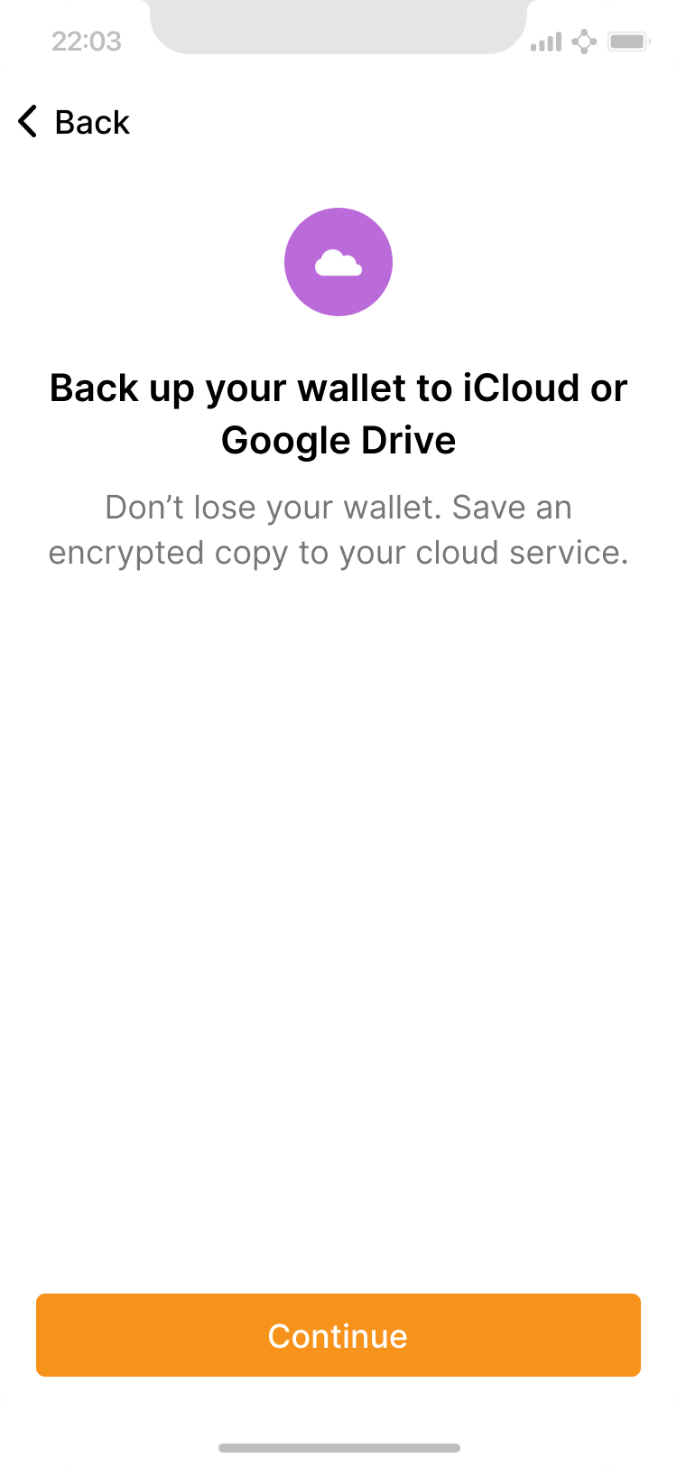 To grant users some ownership of their wallet data, you can create an optional manual backup within the settings menu. A great way to do this is by framing it as an extra layer of security or a good alternative in case the user loses access to their cloud account or feels uncomfortable trusting their cloud provider.