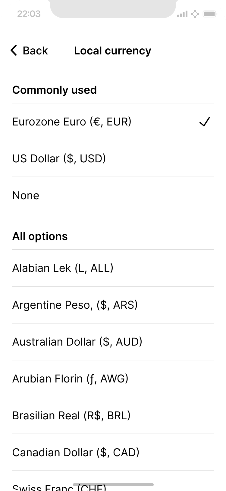As you probably noticed in previous pages, various settings can be configured contextually throughout the app experience (like hiding and unhiding the balance). All these options, and a few extra ones, are bundled in the settings area.